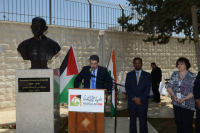 Bust of Mahatma Gandhi unveiled at the 'Garden of Nations' at Ramallah, State of Palestine [April 2014].