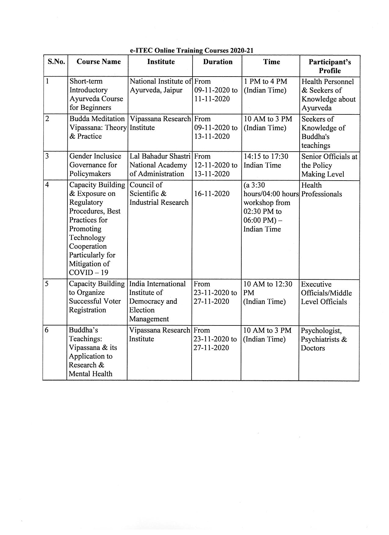 Representative Office of India welcomes applications from Palestinian nationals for courses under the e-ITEC programme for the year 2020-21.