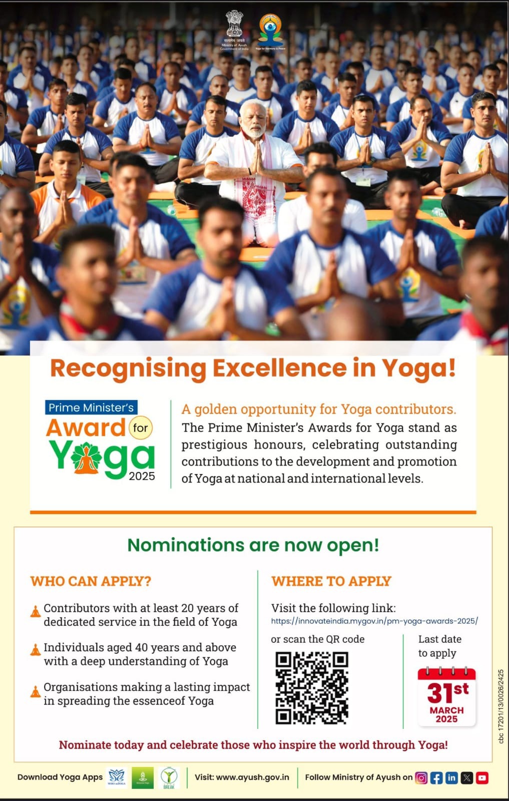 Nomination for Prime Minister's Yoga Awards 2025